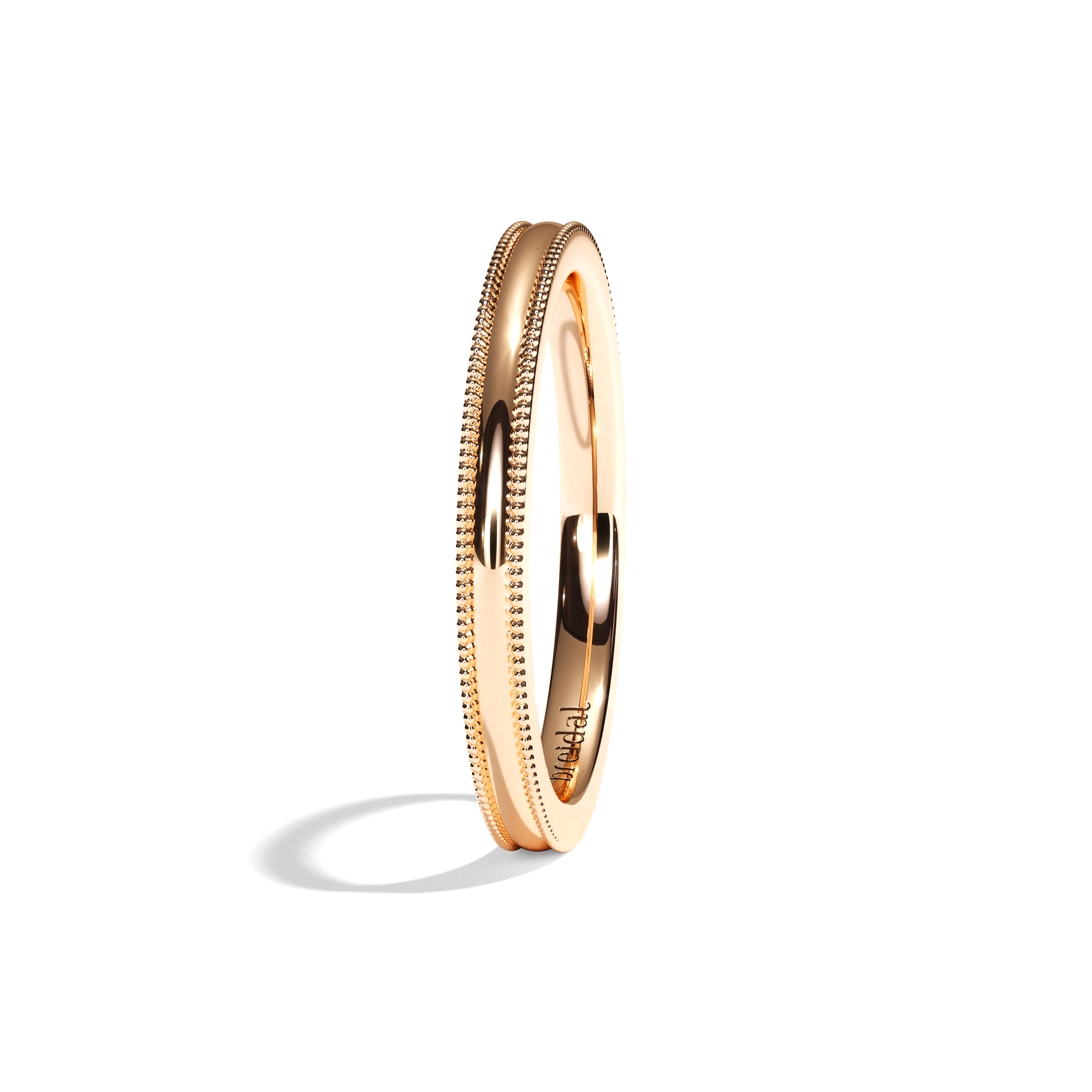 L'alliance « Le Romantique » en or 18 carats ou platine a été pensée pour devenir un modèle original et moderne. Un style intemporel et discret, associé à un confort inégalé grâce à son style perlé tout en or.