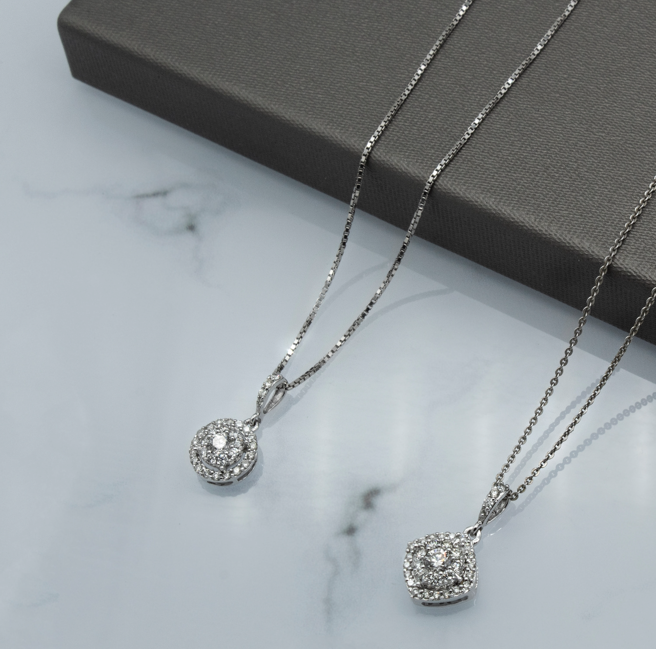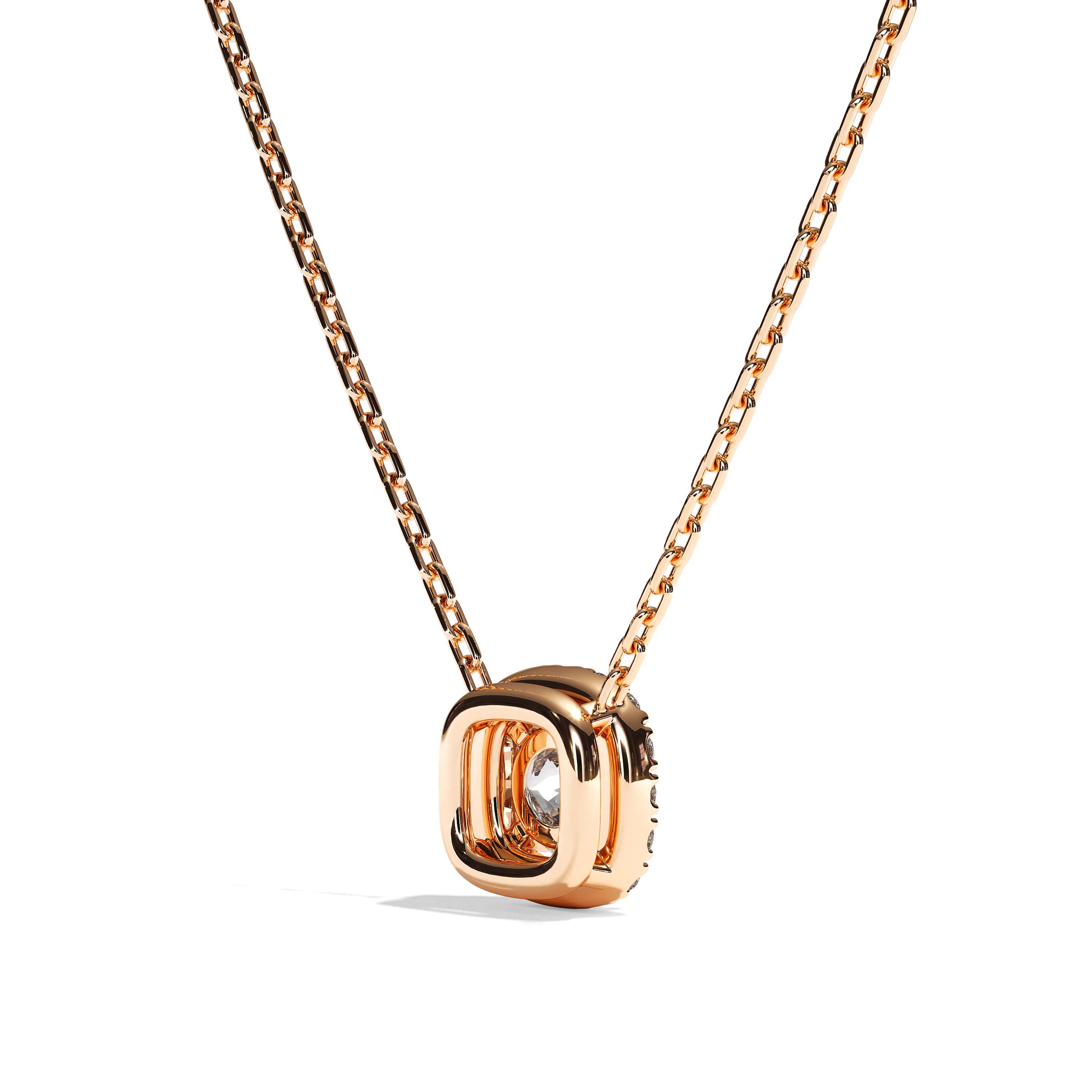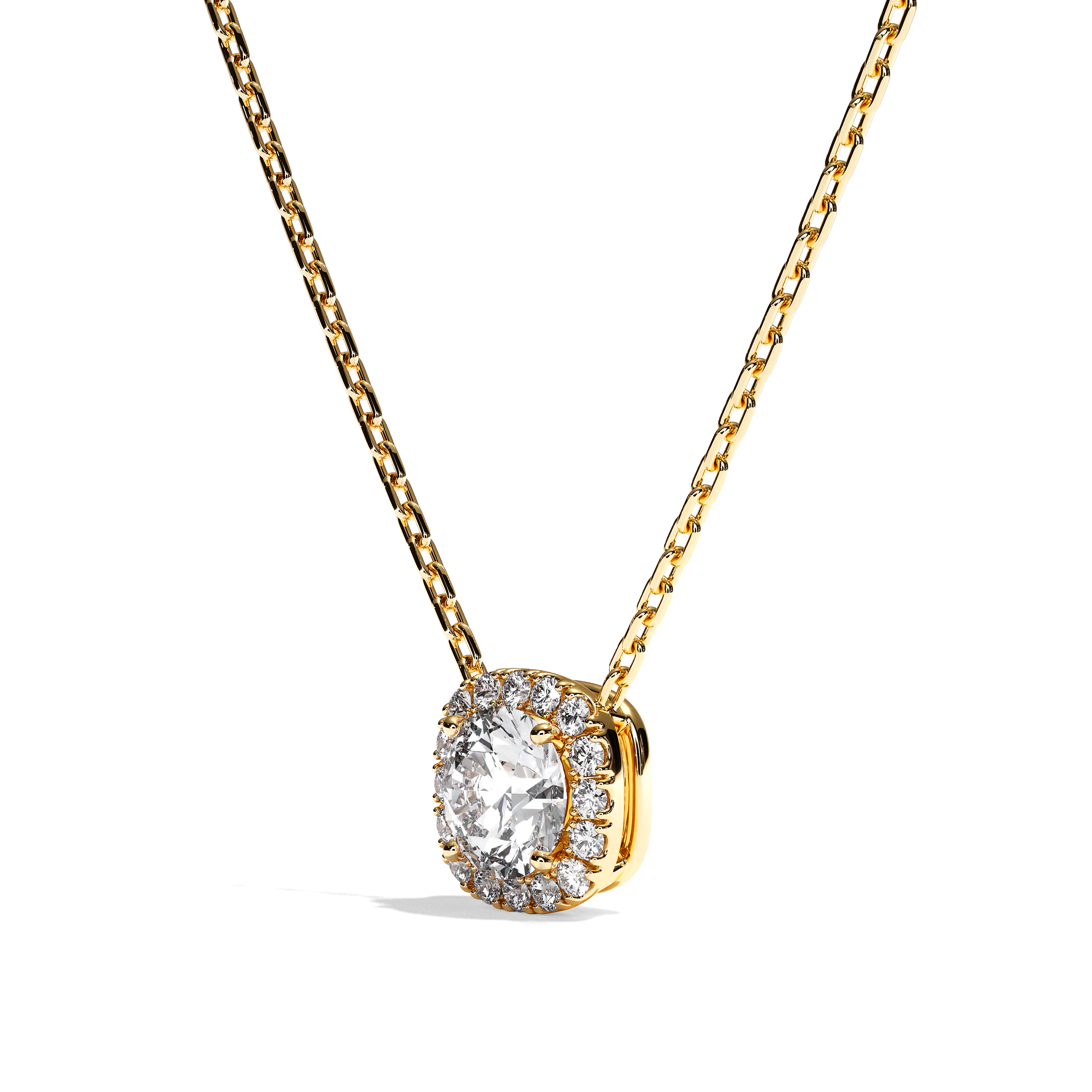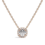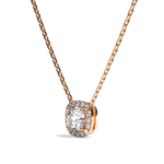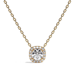 La particularité de ce modèle réside dans la présence du halo de diamant de taille coussin venant entouré la pierre de centre pour lui donner davantage d'importance. Pour ce collier, nous sélectionnons des diamants certifiés de haute qualité pour un éclat parfait.