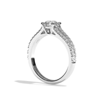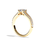 Ce diamant est maintenu par un sertissage 4 griffes pour un style à la fois sécurisé et élégant. Le double corps de la bague est pavé de diamants en micro pavé , offrant une brillance spectaculaire et un design raffiné qui ne passe pas inaperçu.